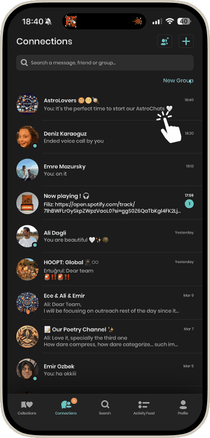 Sometimes typing just doesn’t cut it — that’s where HOOPT Circles come in. These are your low-pressure, high-vibe voice rooms for real-time connection with your people.